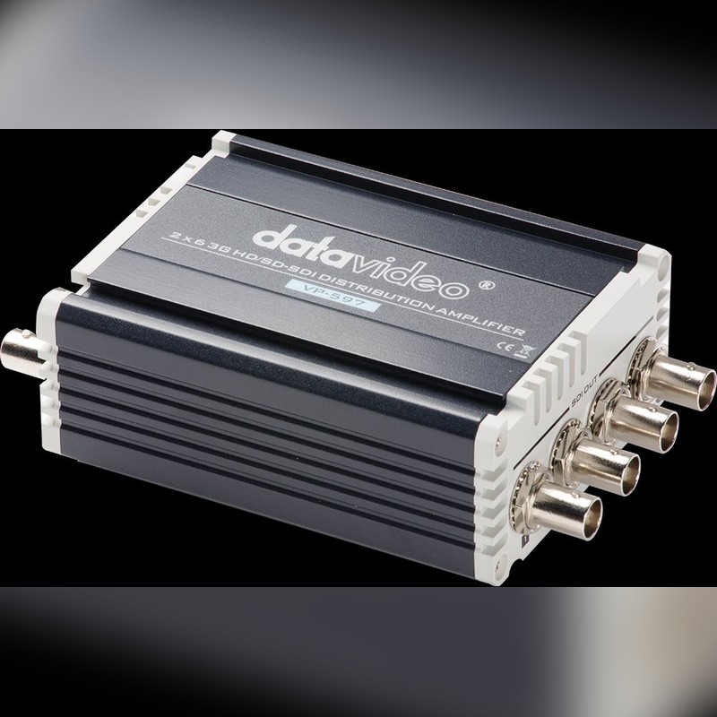 Der Datavideo VP-597 ist ein 3G/HD/SD-SDI Verteilverstärker mit zwei SDI-Eingängen und sechs SDI-Ausgängen, die über eine Re-Clock-Funktion verfügen. Unterstützt werden 3G-, HD- und SD-SDI-Formate sowie eingebettetes SDI-Audio mit bis zu 8 Kanälen. Die Eingangswahl erfolgt per Panel-Schalter oder GPI-Fernbedienung. Das Gerät eignet sich für die Signalverteilung in Live-Produktionen, Studios oder Installationen, bei denen mehrere Empfänger mit einem SDI-Signal versorgt werden müssen.